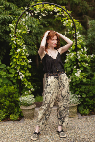 April Washed Floral Print Wide Leg Jeans