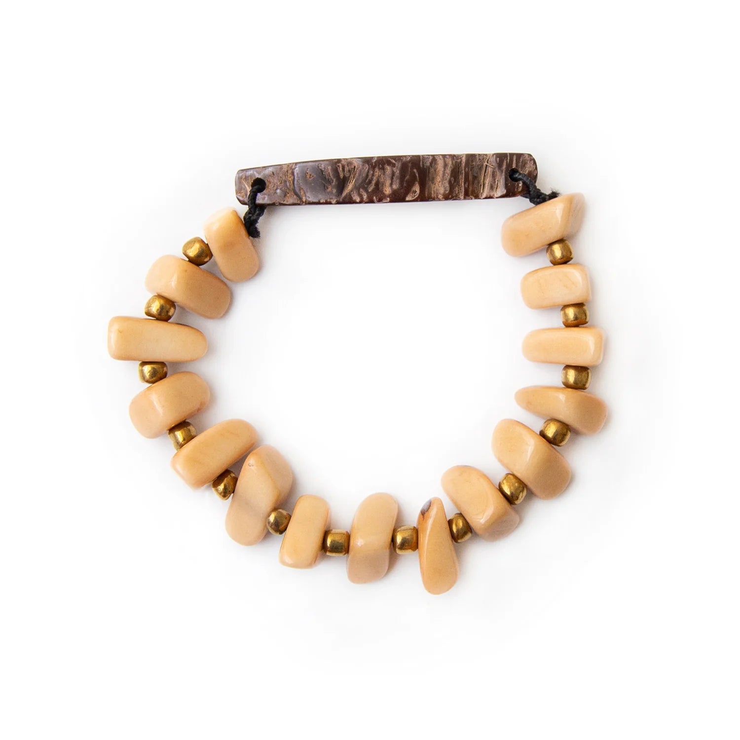Vibrant organic stretchable bracelet with recycled coconut and tagua pieces. Layer multiples for a fun earthy statement!