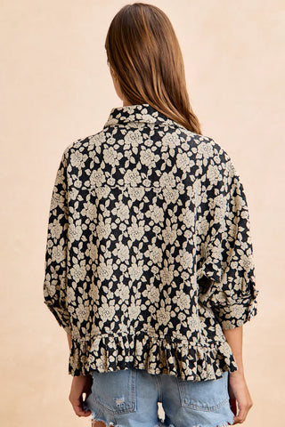 Luna Mixed Lace Floral Shirt Green Floral and Cream - by POL