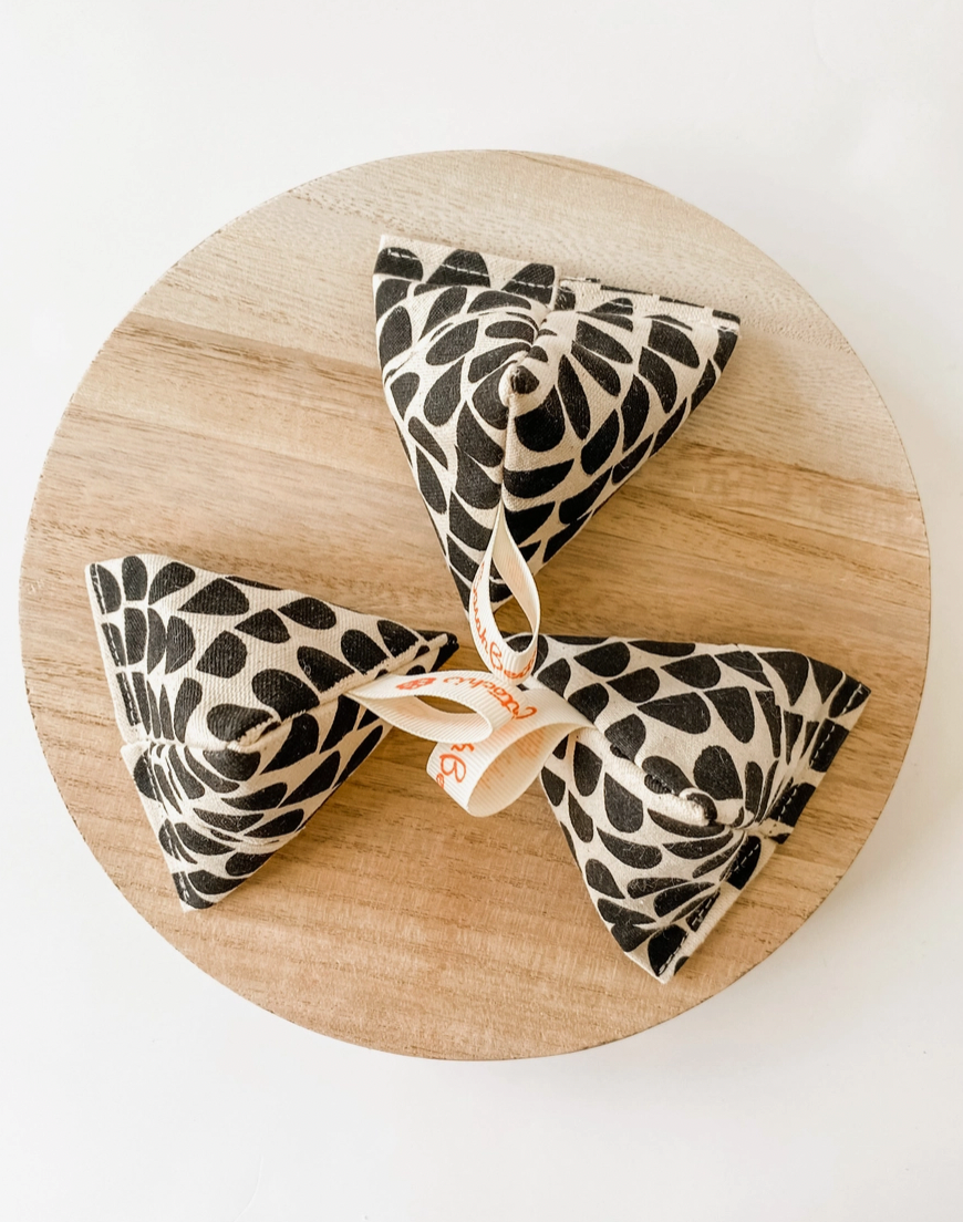 Hide this Lavender Sachet in your lingerie drawer or folded in between your bath linens to keep fabrics fresh.. Need to freshen up your wardrobe or gym bag? Toss in a Lavender Sachet or hang from the convenient loop anywhere you want that lovely lavender scent. Also super useful in the kitchen to help get rid of cooking odors. Give this fragrant little triangle a gentle squeeze to activate the lavender buds.