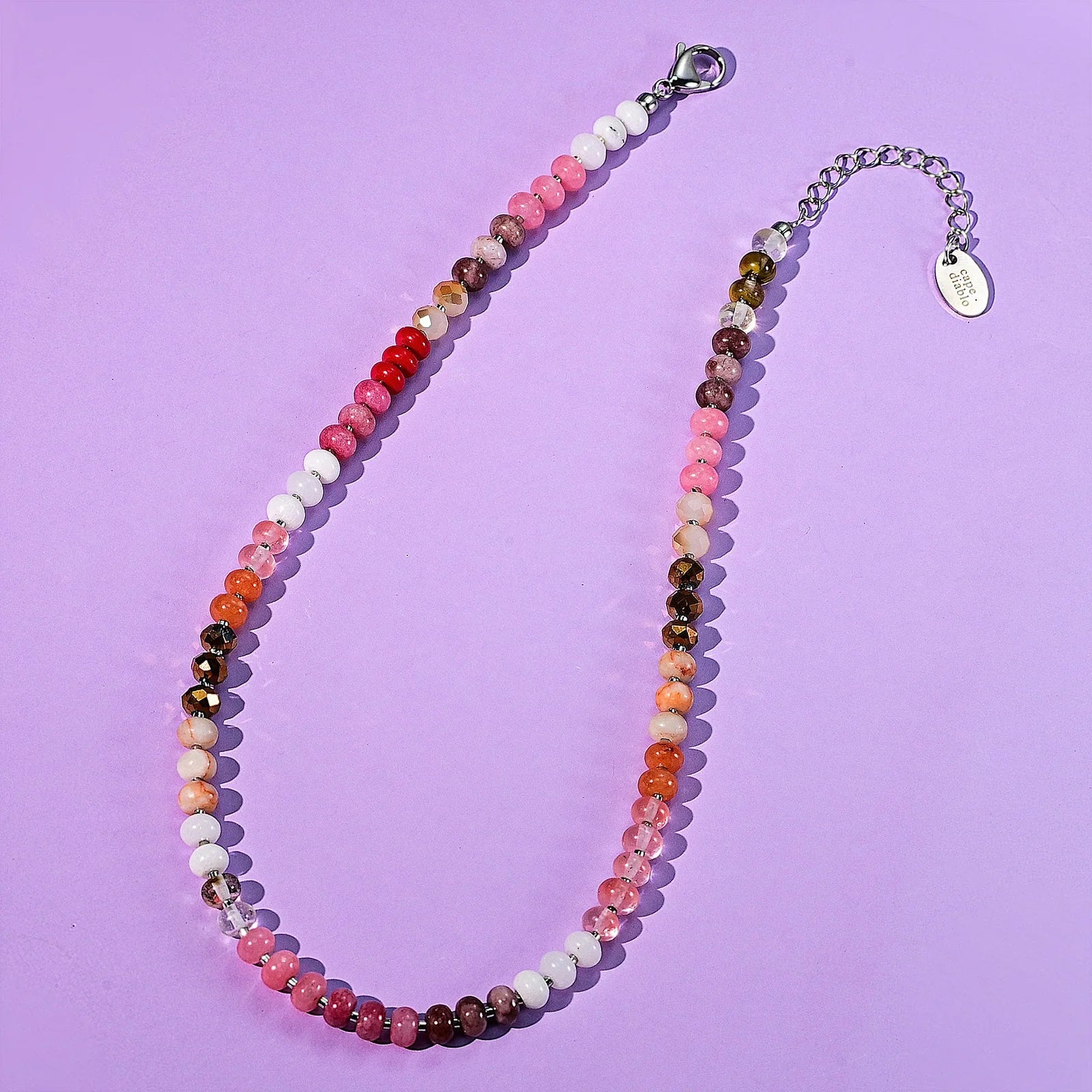 Infuse your look with warmth and elegance with the Ruby Blush Stone Necklace. Featuring a stunning mix of Crystal Jade, Jasper, and Miyuki Beads, this handcrafted piece beautifully blends soft pinks, deep reds, and earthy tones for a radiant, feminine touch.