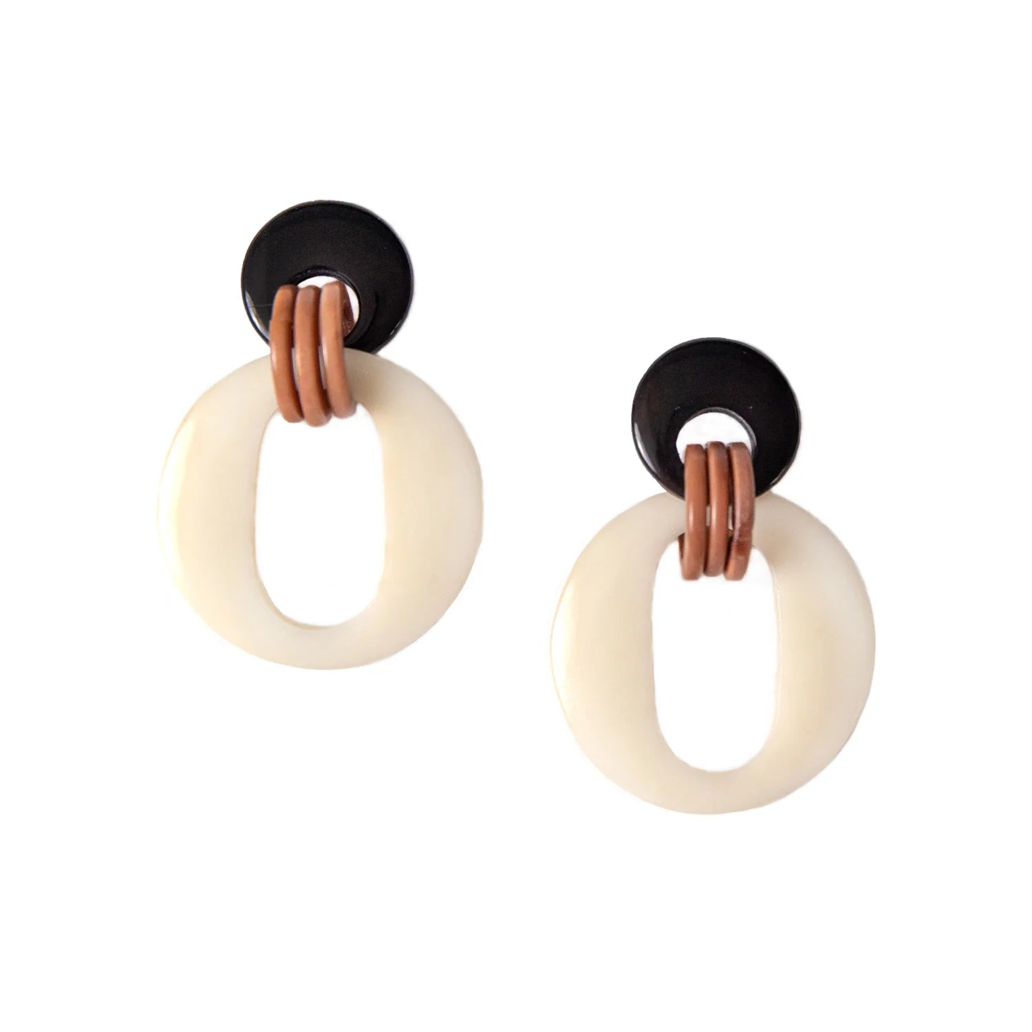 These 2-inch Wanda Earrings feature polished, smooth tagua rings set on a secure post design, combining natural elegance with refined craftsmanship. Their lightweight construction ensures comfortable wear, making them an ideal accessory for both everyday and special occasions.
