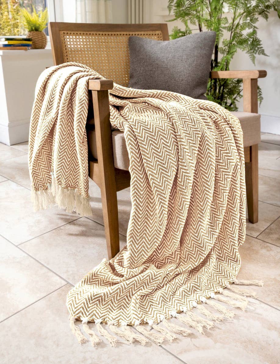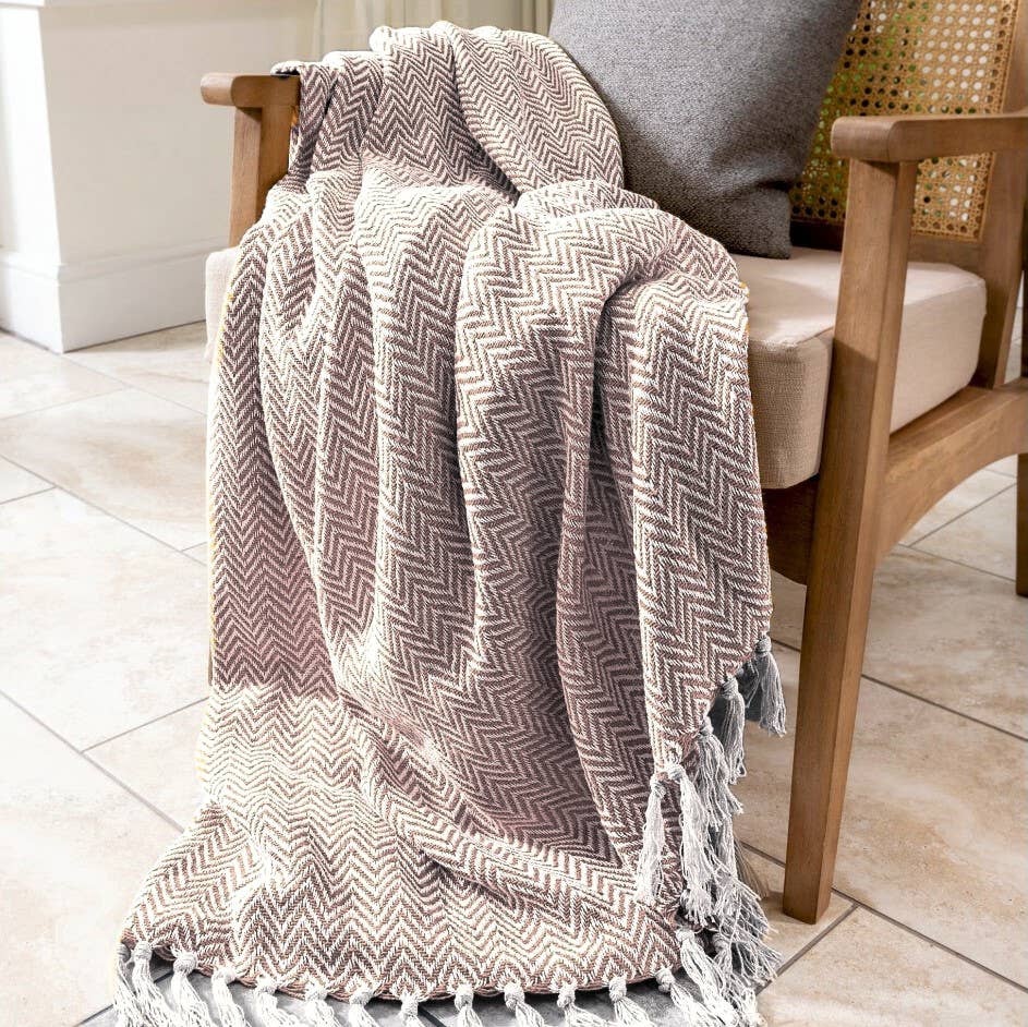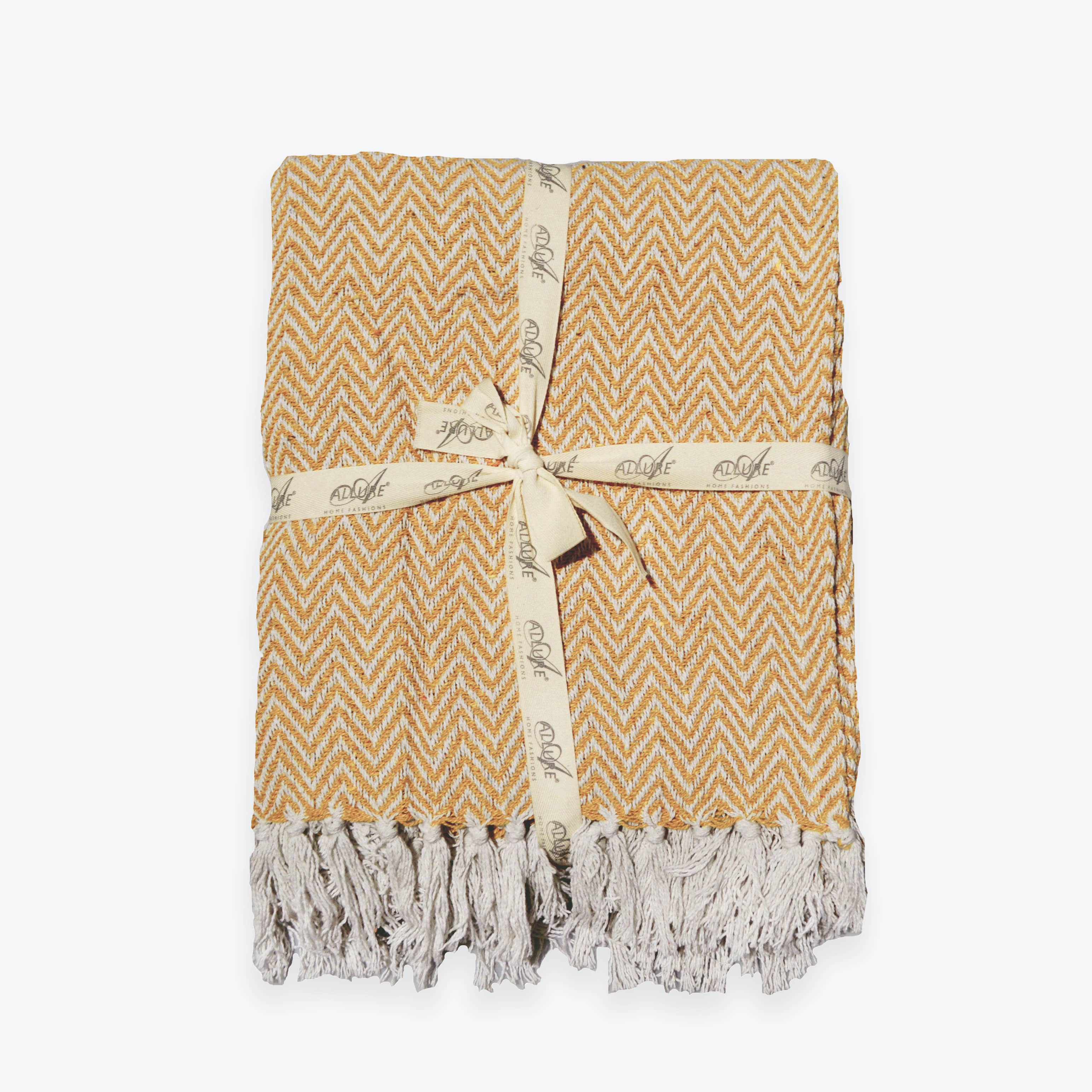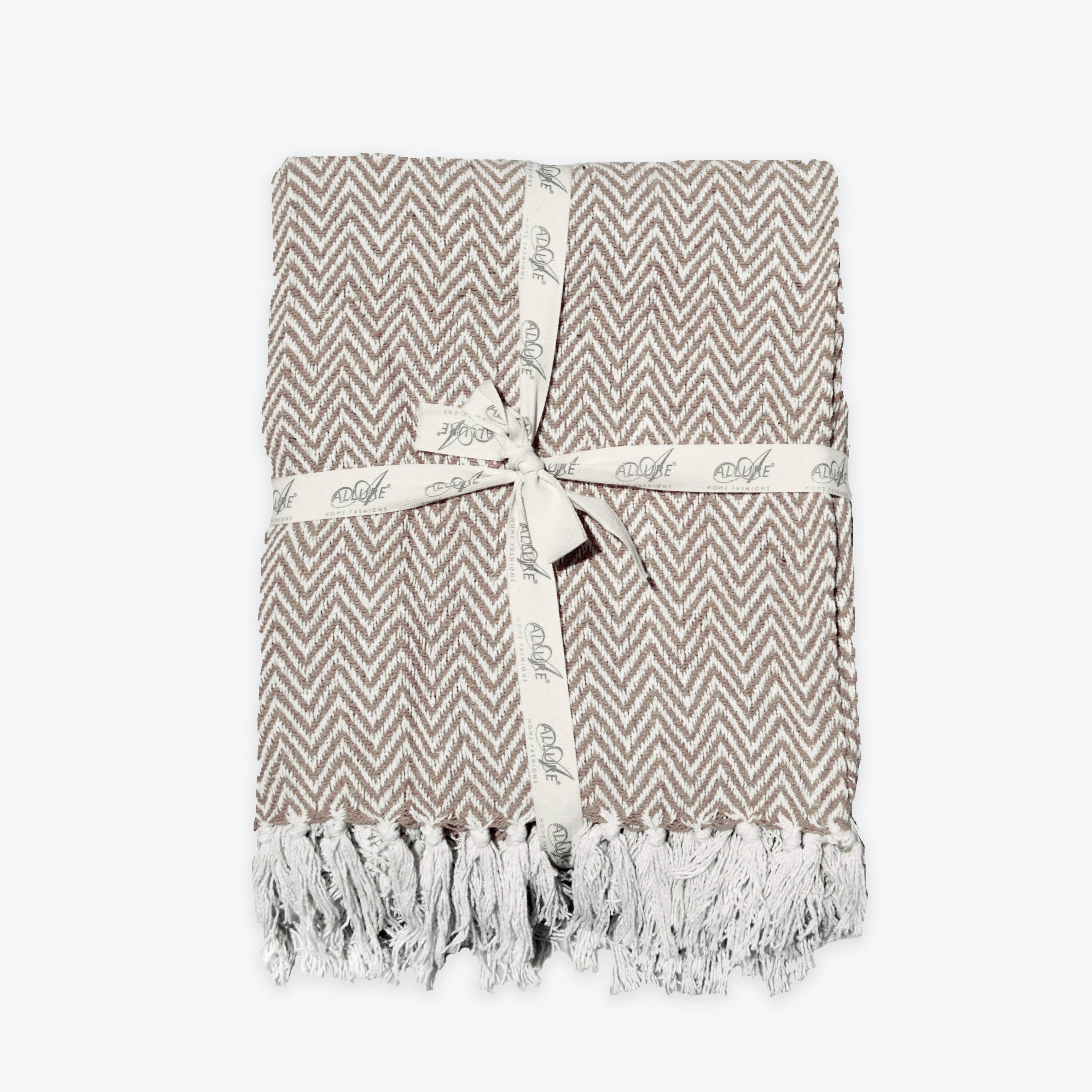 Hand-loomed throw in chevron design with a tasselled fringe, which is guaranteed to add warmth and comfort to any room. This blanket is perfect for use as a loose cover for a single seat sofa, single bed or chair and is great for snuggling up with friends or family on film nights. These throws arrive ribbon tied for an added touch of luxury, making the perfect gift for any new homeowners.