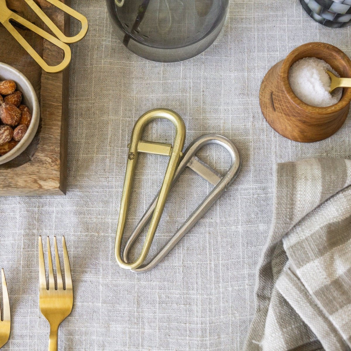 These snowshoe-shaped bottle openers are mightier than they appear. Heavy gauge mild steel wire is hammered, then given a brass finish that works with any decor. The low-profile, recurving design allows them to be hung from a hook or displayed for frequent use.