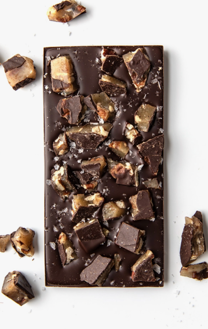 Inspired by time in Austin, Texas, this bar brings you a touch of the heartland with crunchy brown butter pecan brittle covering rich 70% dark chocolate. This bar has it all! Enjoy on its own or crumbled on top a bowl of vanilla ice cream.