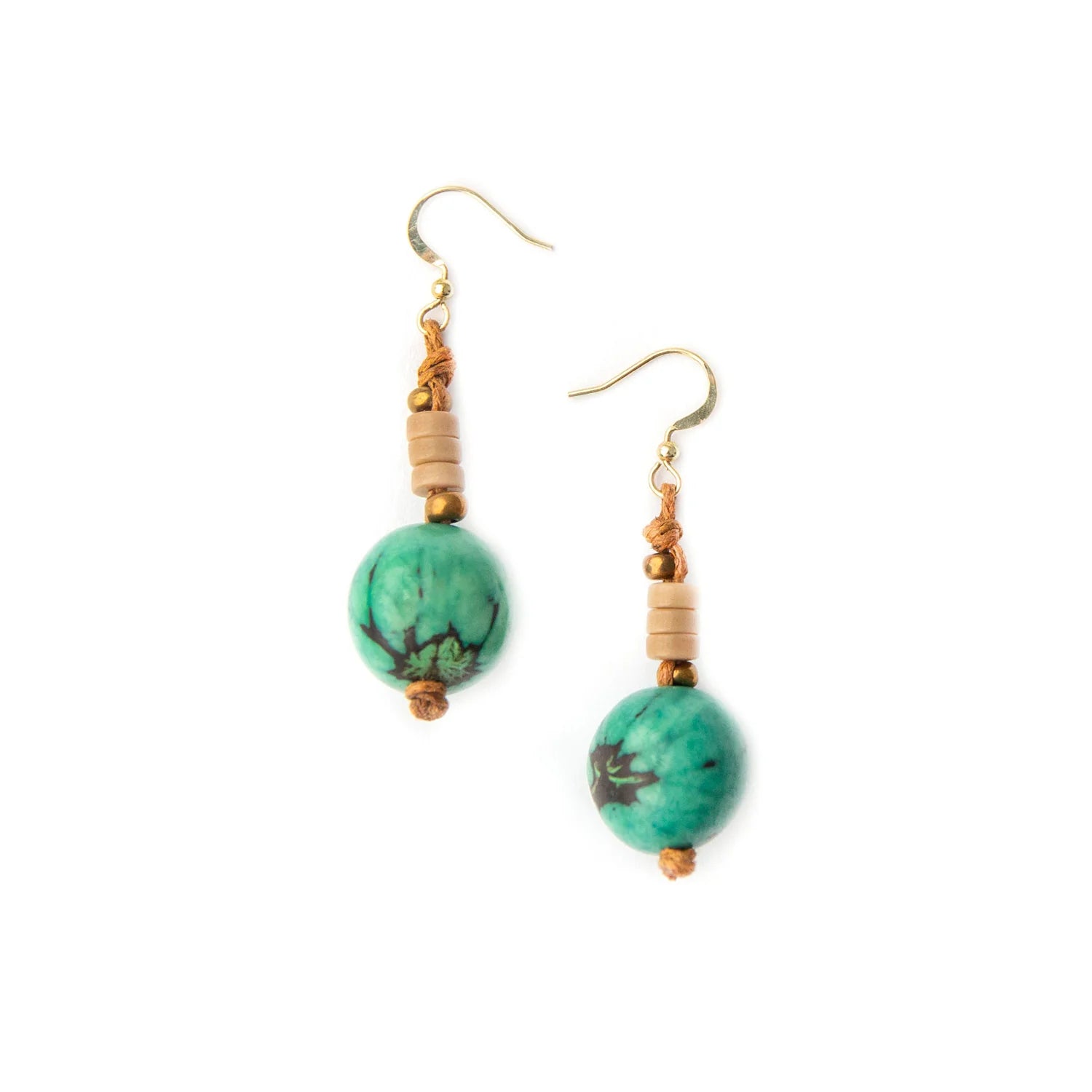 Fun boho earrings add just the right amount of texture and color. Handmade with sustainable bombona seeds and topped with little tagua beads.