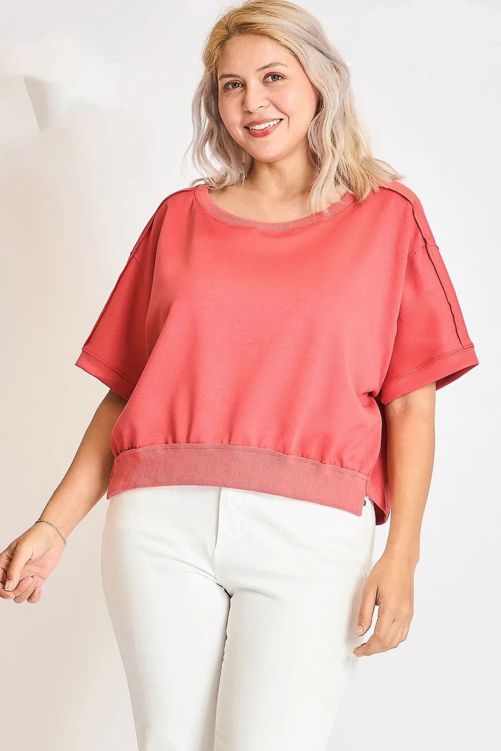 This lightweight cropped sweatshirt is perfect for a casual and trendy look. The cropped length adds a modern twist to a classic sweatshirt design. Pair with high-waisted bottoms for a stylish and comfortable outfit.