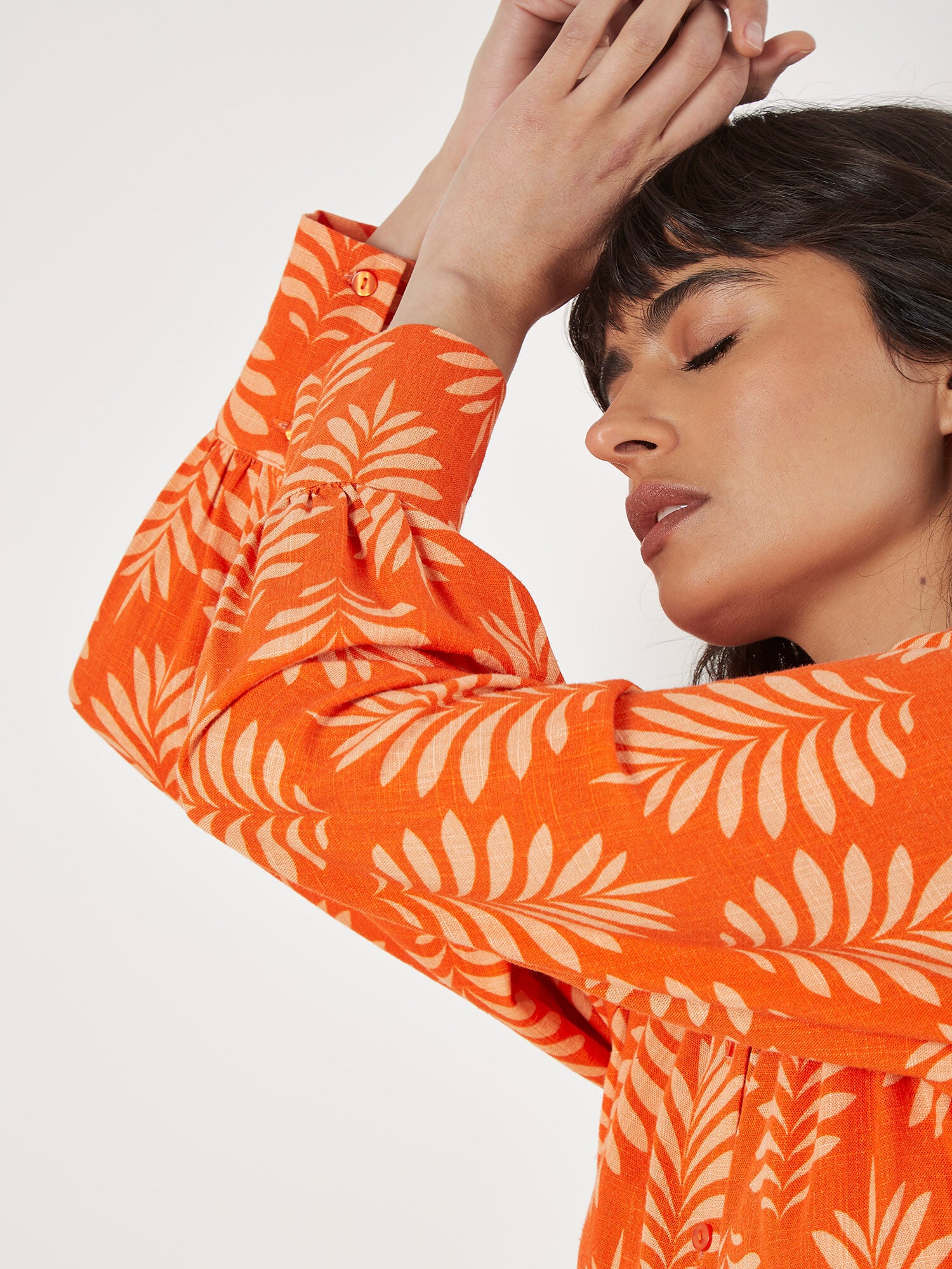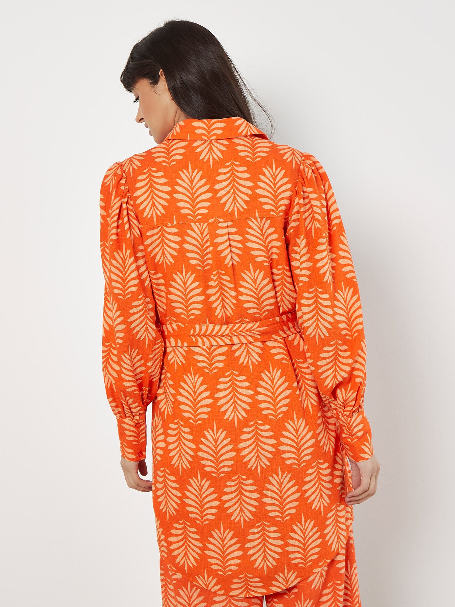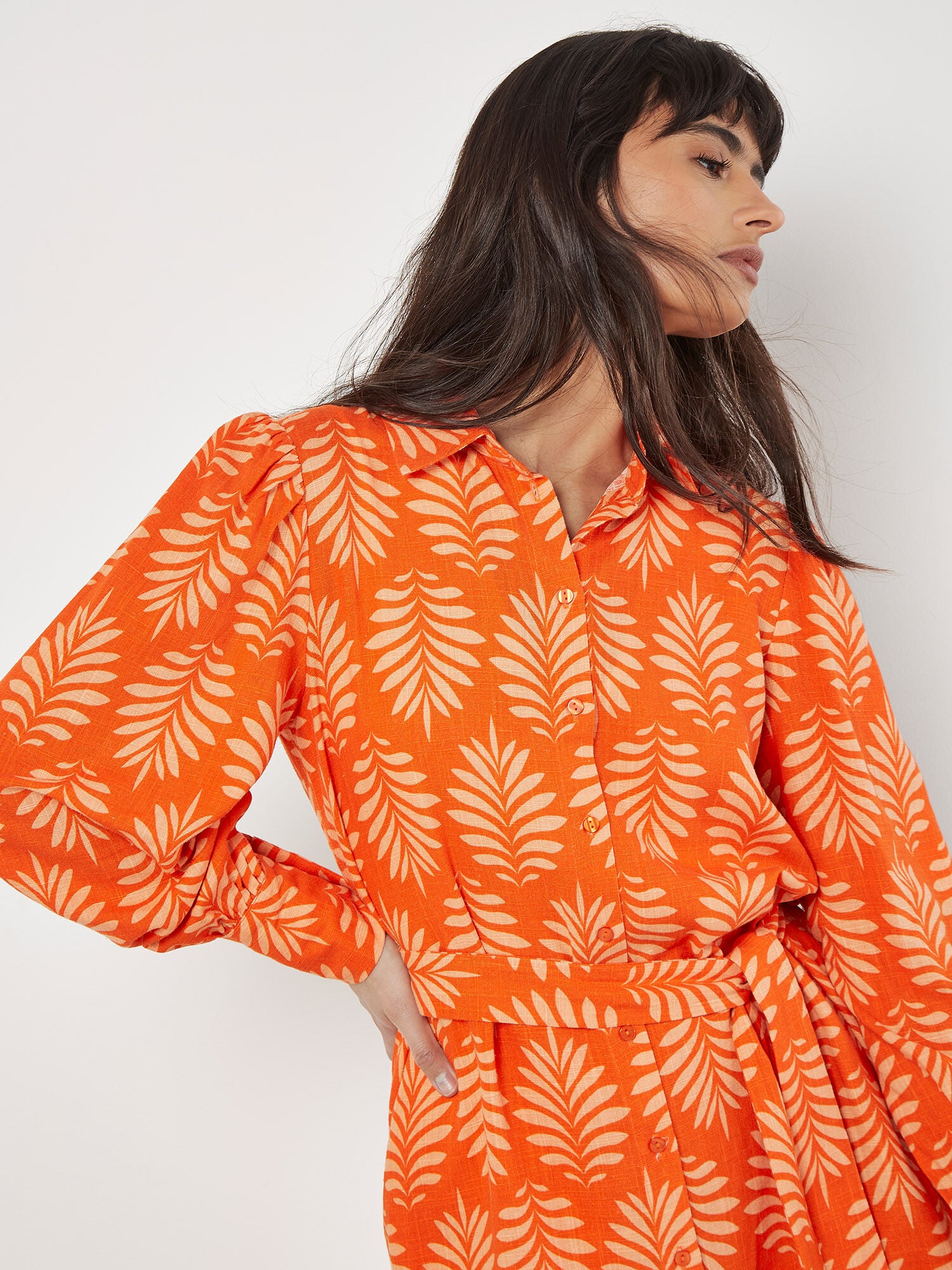 In classic shirt styling, this midi dress has been cut from a linen blend fabric that's perfect for warm-weather wear. Framed by a collared neckline and long sleeves, it buttons down the front and boasts a fabric belt to create a defined fit. Style yours with wedge sandals for an effortless finish.