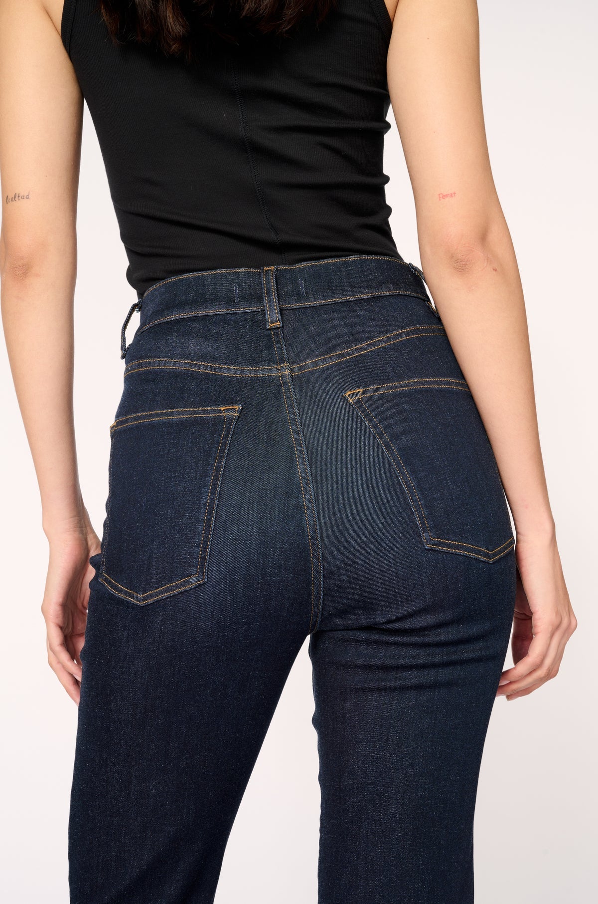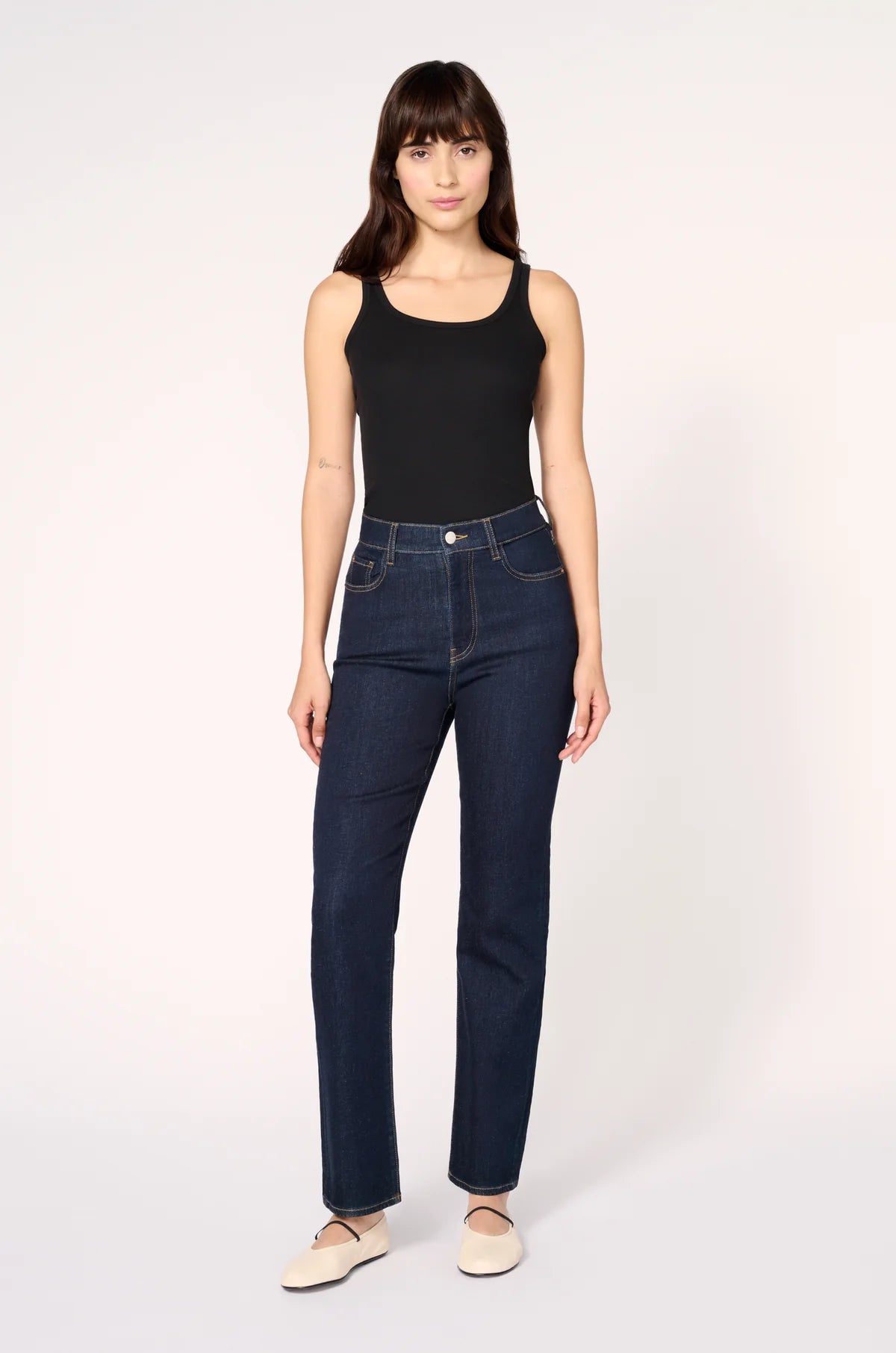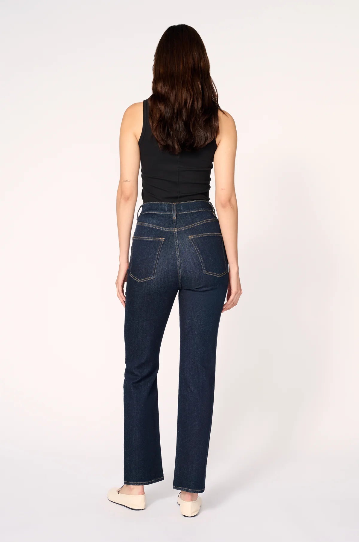 Denim meets yoga pants for the most comfortable jeans you'll ever own. ASE Stretch is our bestselling high-rise straight fit with extra stretch and a super-soft feel. It’s your favorite jean upgraded with maximum comfort for long flights, long walks, and long hours at your desk.Long Gone is a deep indigo rinse that is completely clean with no fading. It features a brushed silver shank and antique copper rivets, golden brown thread, zip fly and a clean hem.