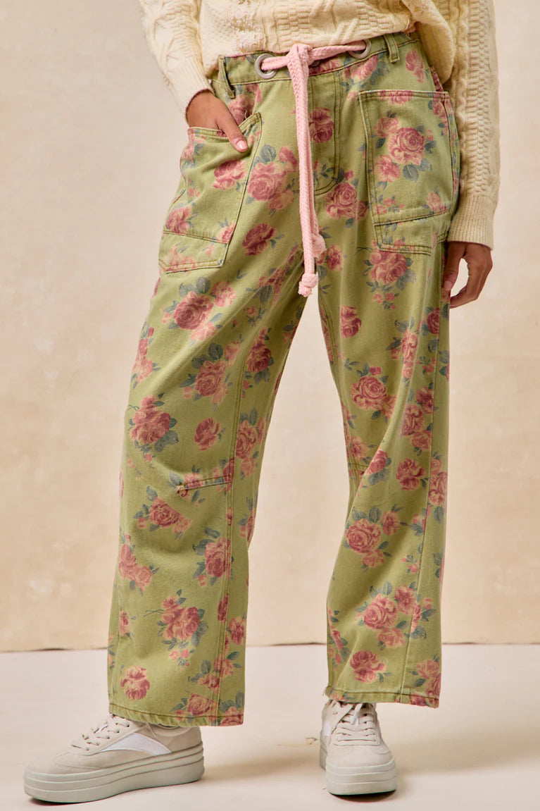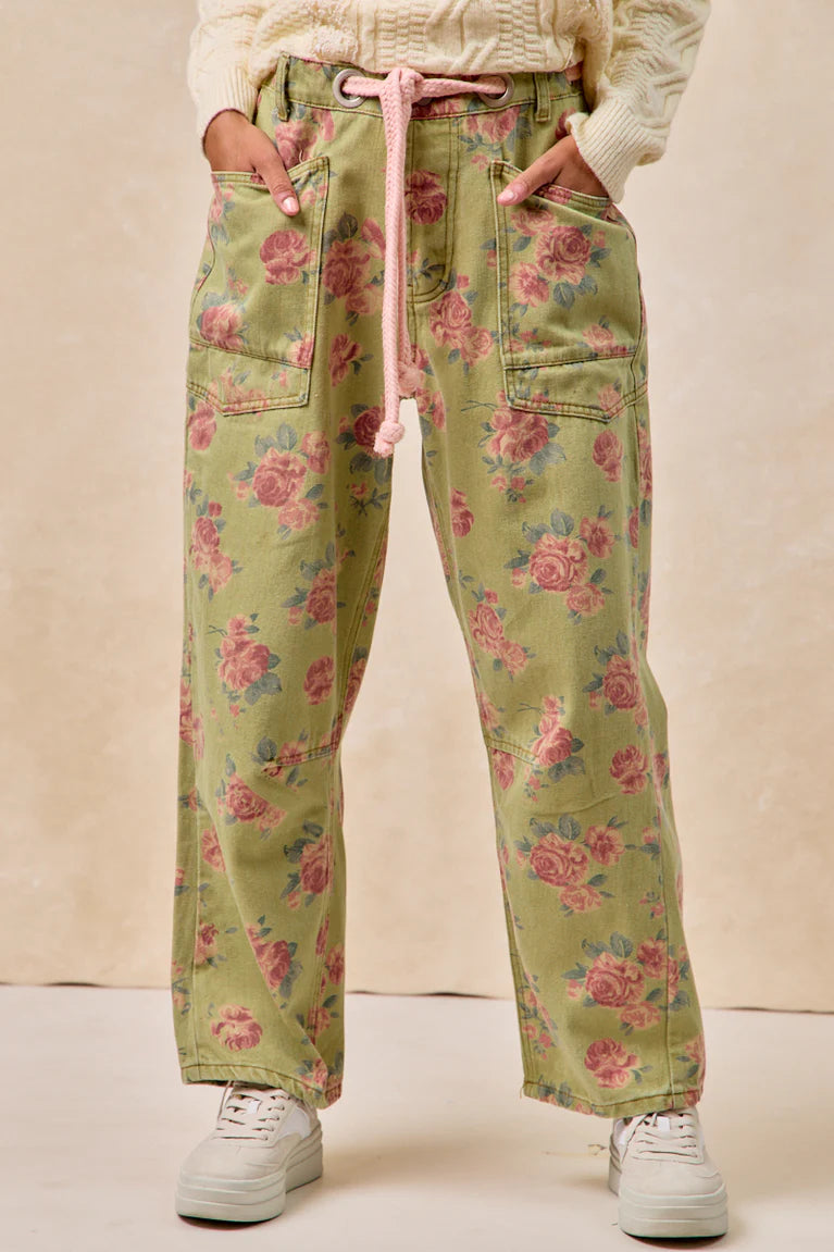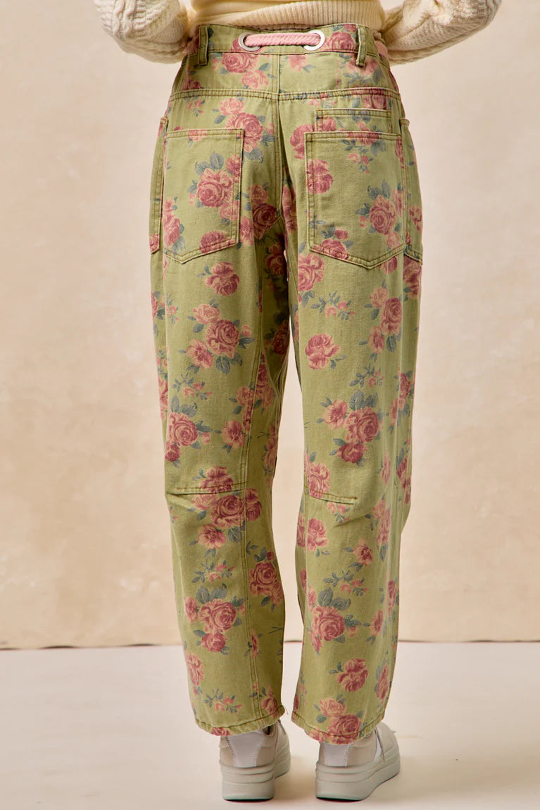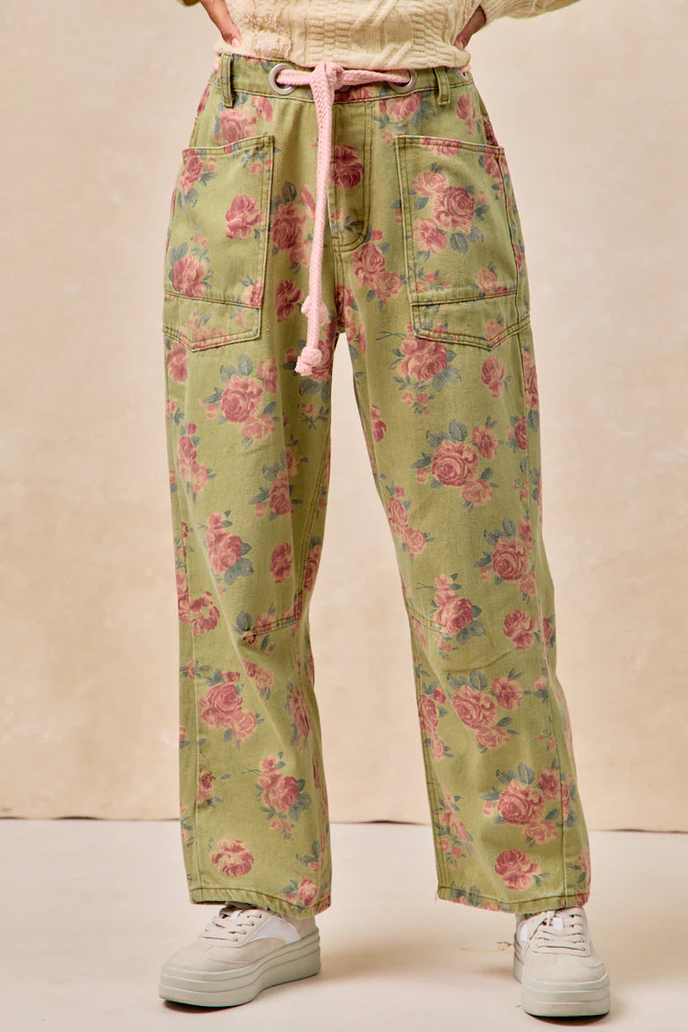 Meet your new statement staple. These floral utility pants blend an easy, relaxed fit with a charming vintage-inspired print that feels playful yet refined. Designed with soft cotton, wide legs, and oversized patch pockets, they bring effortless cool to any outfit. The rope-style drawstring adds that little pop of personality we love—perfect for pairing with cozy knits, simple tees, or a structured jacket for an elevated everyday look.