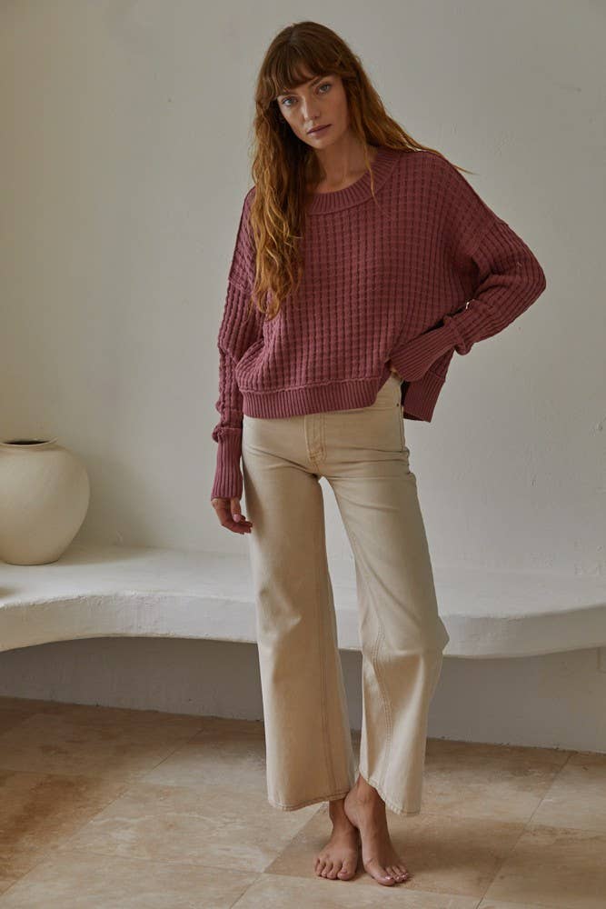 Featuring a ribbed crew neck, it provides a flattering fit and texture, while side slits add a modern twist to the classic design. Whether layered over a tee or worn solo, this versatile sweater is ideal for everyday wear or a relaxed weekend look. Add the BAYLOR Pullover to your closet for a chic, comfortable essential you’ll reach for again and again.